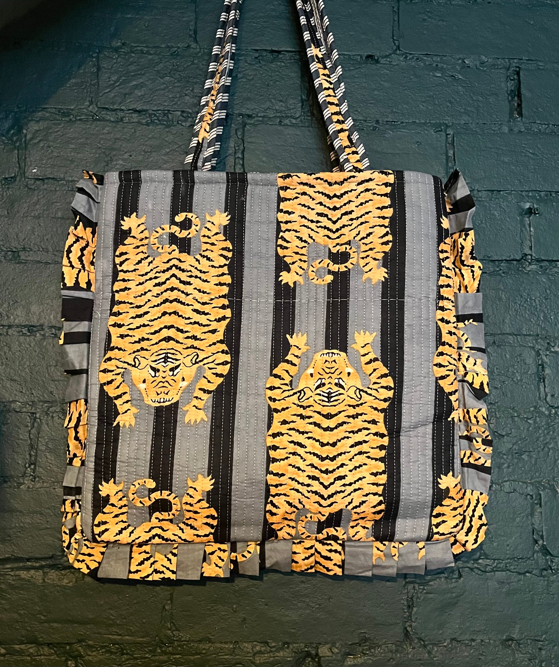 Our newest tote in the collection! Frills! These are smaller than our best selling totes, but still perfect size for daily life. Reversible, cotton, and washable.